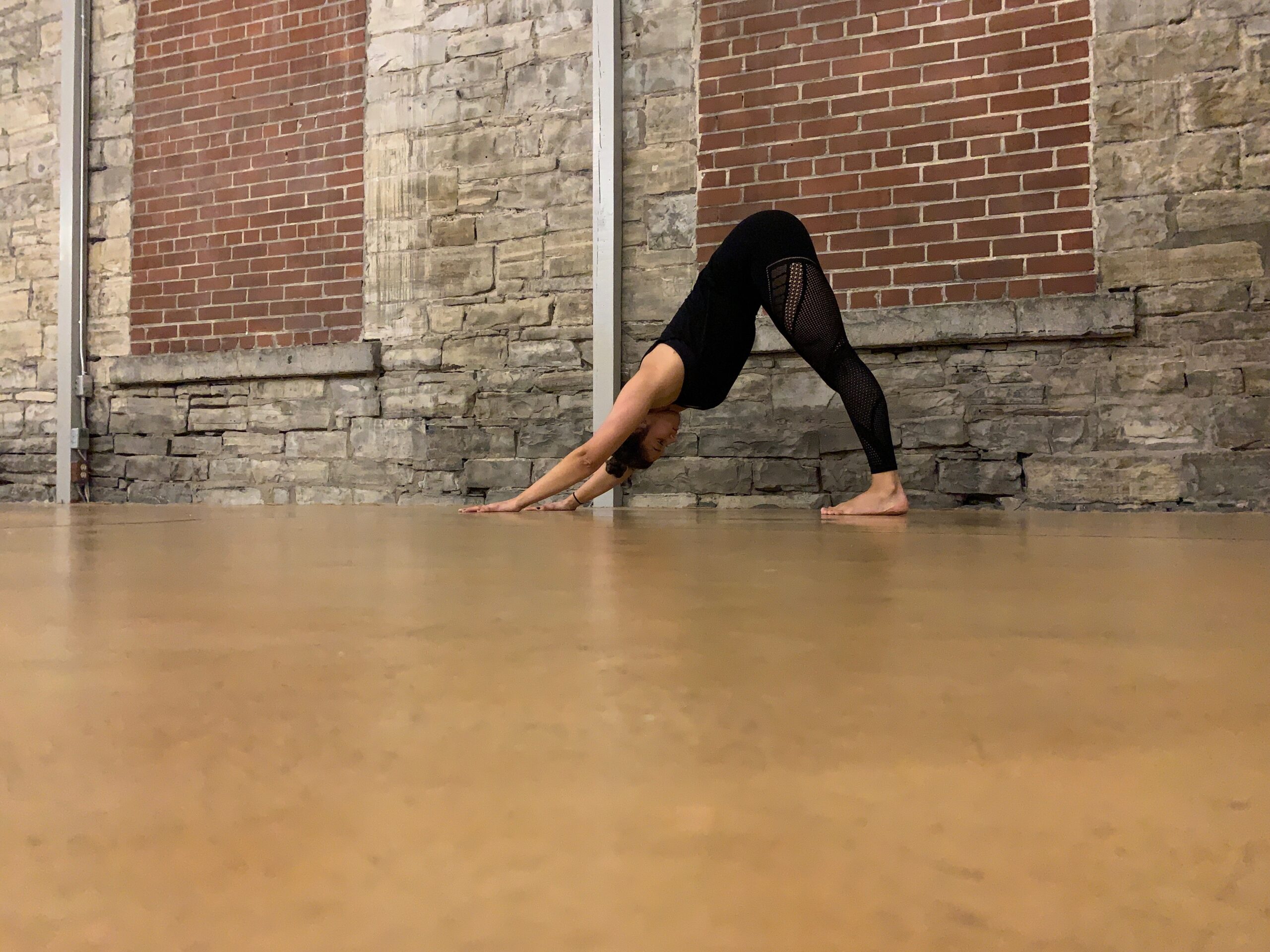 Downward facing dog is an energizing pose that can be practiced by all levels at home or in the gym!